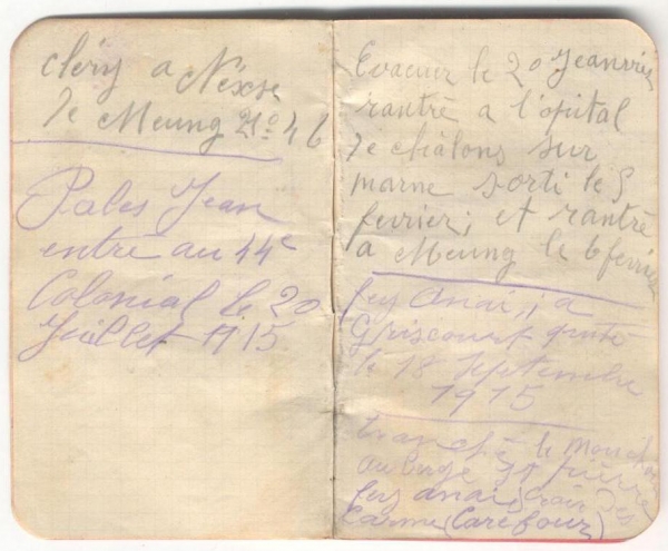 Le 1 er classe Pales, numéro 89 au contrôle spécial, devient le matricule 07840 et est incorporé à la 2 e compagnie du 44 e régiment d’infanterie coloniale le 20 juillet 1915.