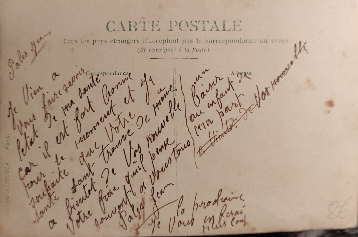 Après son hospitalisation, le soldat PALES obtient une permission qui lui permet de rejoindre sa femme et son fils à Cabestany. Durant ce séjour en pays catalan, Jean concevra son second fils Jean.